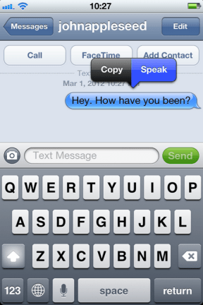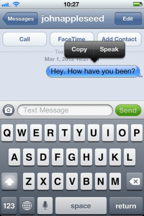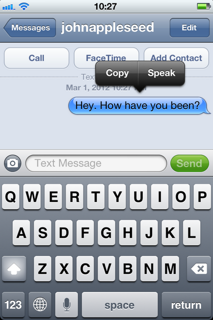 You can use Speak Selection just about anywhere that you can select text. Here is an example using Speak Selection in iMessage. Simply highlight the text, and then tap “Speak” in the context menu.