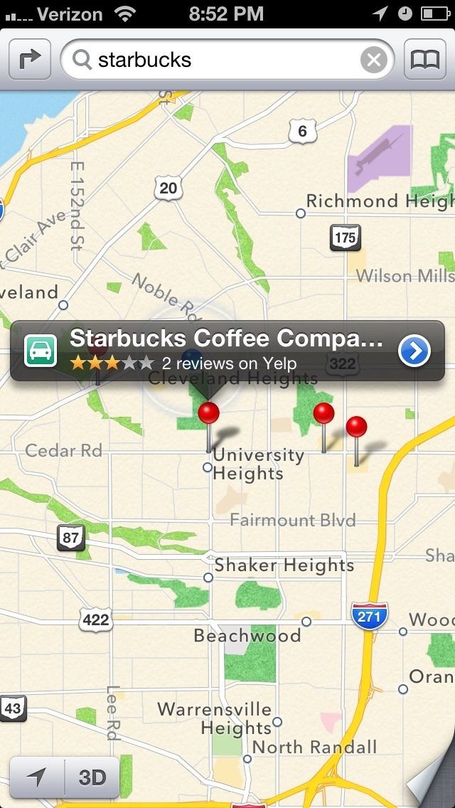 It’s a dark windy morning and you have no idea where you are. But, nonetheless, you need your Starbucks. If you have your iPhone you can quickly locate and get directions to the nearest one. It’s as simple as that!