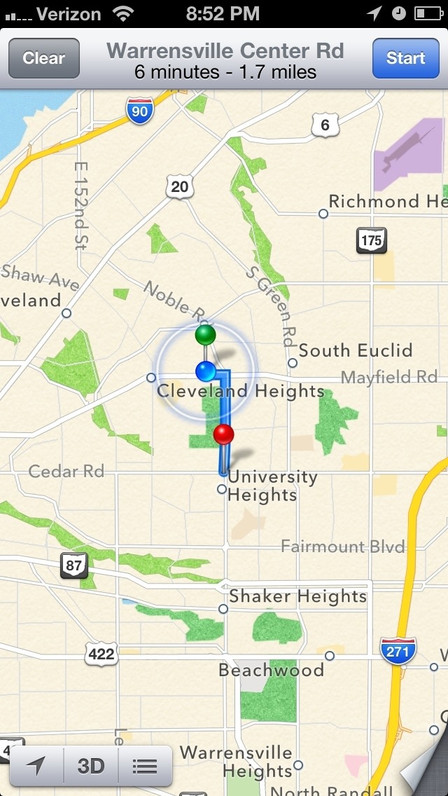 And that’s it! You will now see the best viable route to your location. You can pinch in and out to zoom on the map. I recommend hitting Start at the top right of your screen to have your iphone give you turn-by-turn directions to your destination.