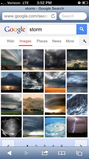 Below, you’ll see that I navigated to my Safari app to initiate a Google search. I’m going to search for a ‘storm’ image to demonstrate how to save it onto my iPhone.