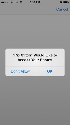 If you select Photo Album, it will ask you for permission to access your photos. Obviously, we should say “OK” or else we have nothing to work with.