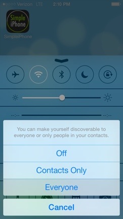 Now you must choose who you are willing to receive AirDrop requests from. You can either choose “Everyone” who has an iOS device, people who are in your contacts list (with iOS devices), or no one at all. For this example, I’ll choose “Everyone”.