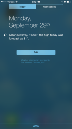 You’ll probably see some stock widgets (loaded by default) in your notifcations center, but we can tweak it to be just how you like it. See the Edit button? Let’s touch that.