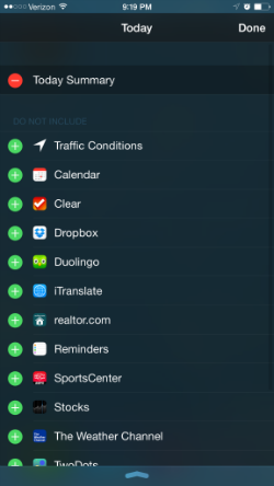 These can include apps from Apple or apps from other people. You just might see an app that you didn’t know would work with the notifications app. Go ahead and toggle a few; add/remove a couple. In this example, I’m going to add the SportsCenter app to quickly see my favorite teams’ scores.